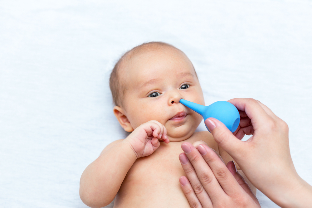 За да почистите по-лесно носа на вашето бебе, е по-дбре да имате помощник. Единият възрастен го взема на ръце и го държи вертикално или в полуседнало положение като фиксира ръцете му. Вторият капва по 1-2 капки физиологичен разтвор във всяка ноздра. След това попива отделящия се секрет със салфетка.