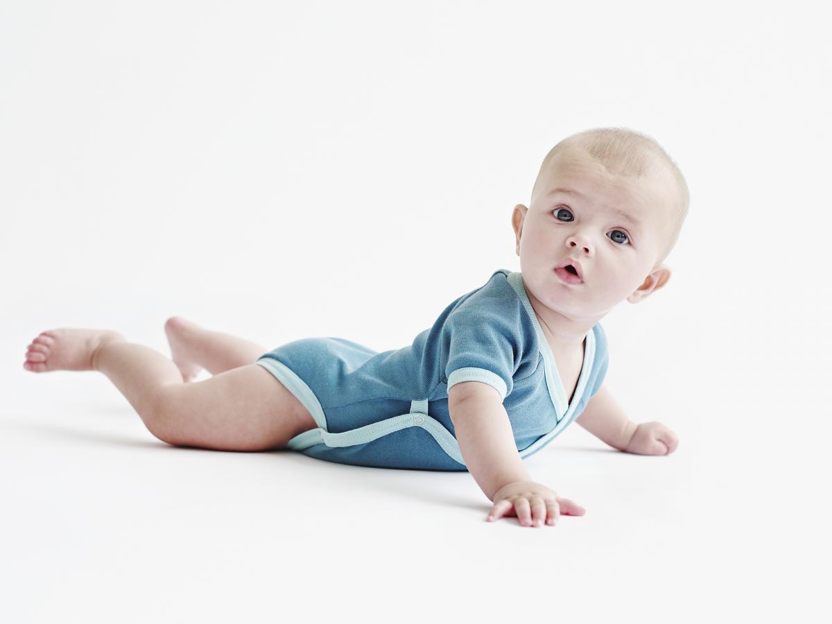 Бебе, което повдига главичката си, легнало по корем. Снимка: Getty