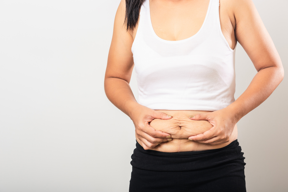 Жена държи с ръце отпуснатия си корем. Снимка: Shutterstock