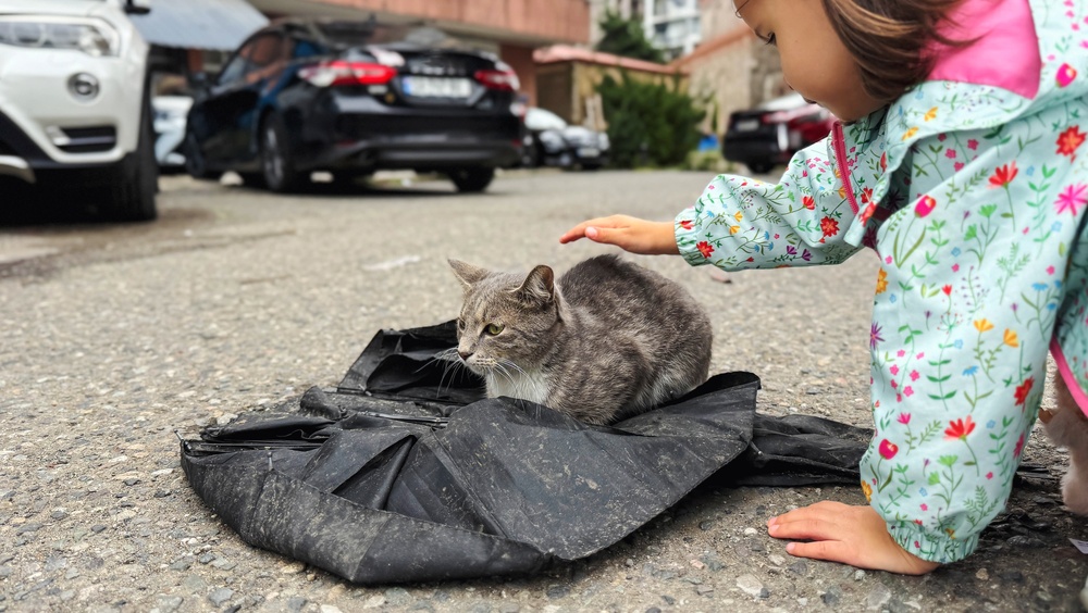 Дете гали бездомни котета. Снимка: Shutterstock