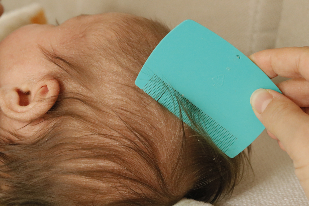 След измиването на косата и нежното подсушаване с хавлийка (само с попиване и никога с търкане), може много внимателно да срешете косата с мека четка. Това се прави не с цел да отлепите крустите от кожата, а само за да отстраните вече изпадалите корички.