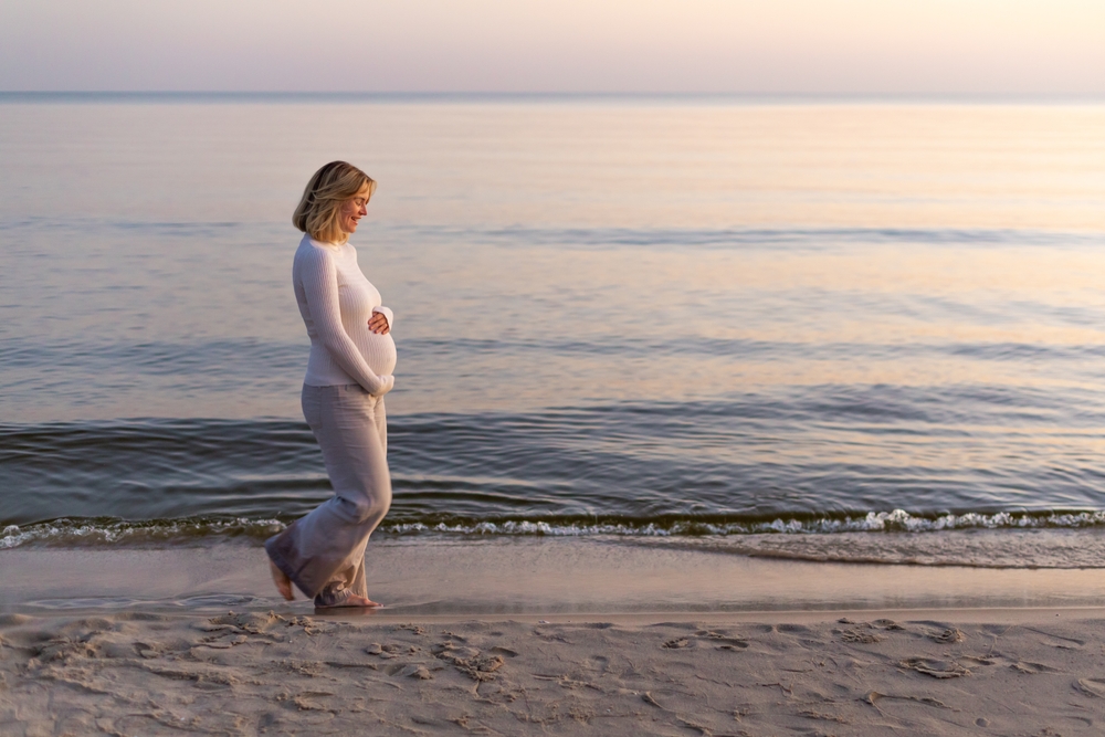 За бременни най-полезното време за плажни разходки е рано сутрин или преди залез слънце, когато няма риск от слънчево изгаряне или претопляне.