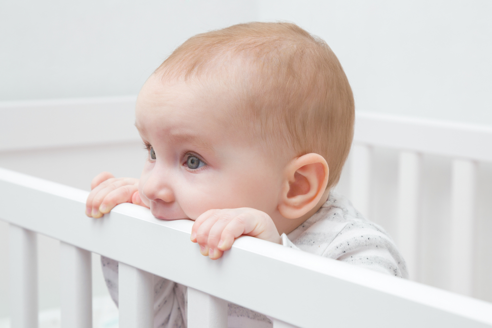 Малко дете, което гризе преградата на креватчено си. Снимка: Shutterstock