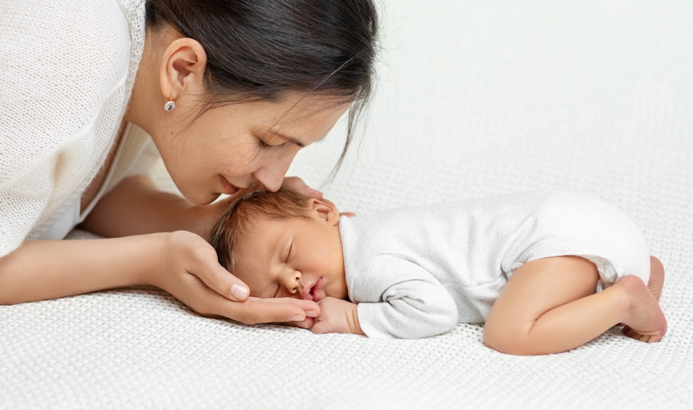 Майка се радва на бебе, което спи. Снимка: Shutterstock