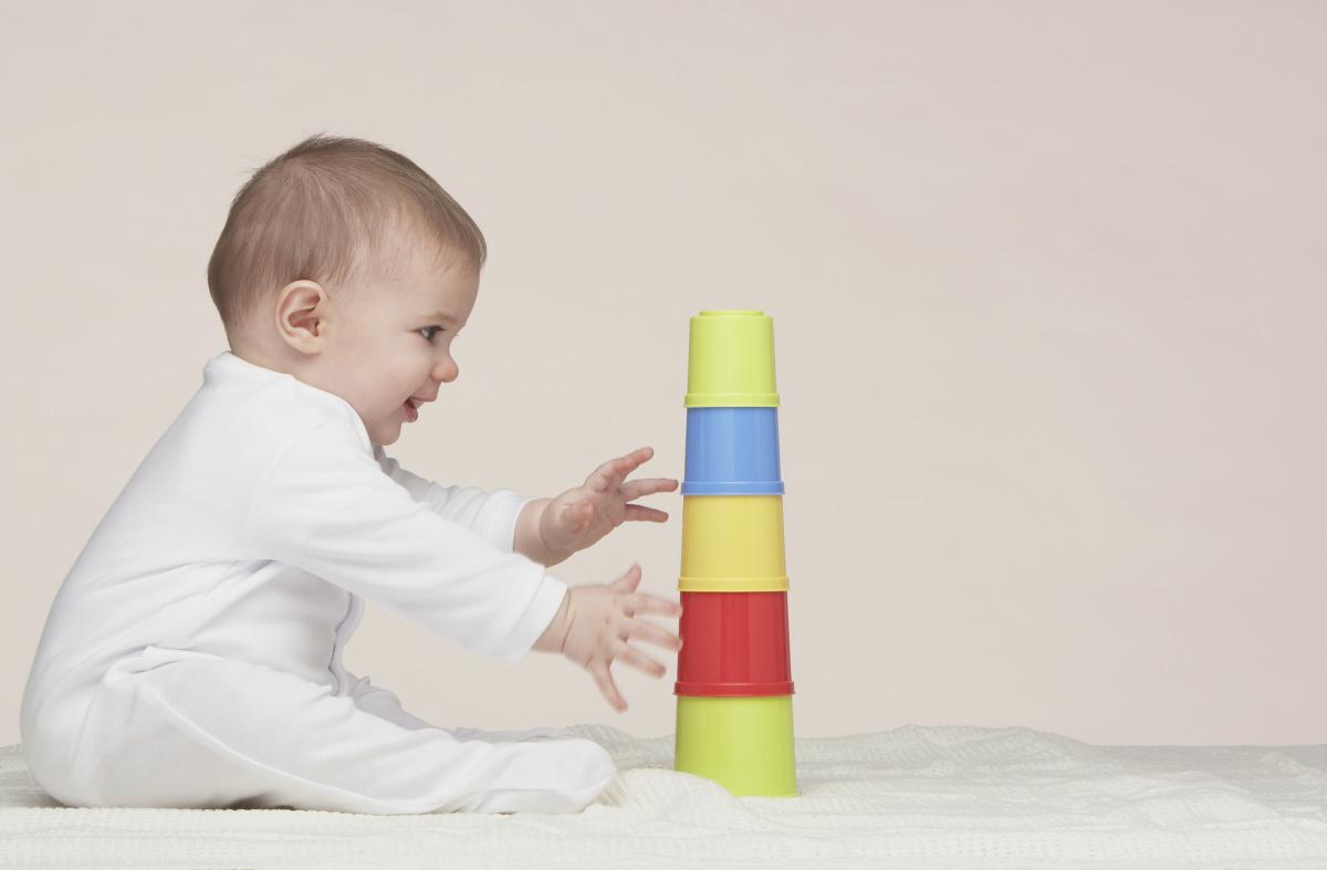 Бебе Разглежда цветни играчки. Снимка: Getty