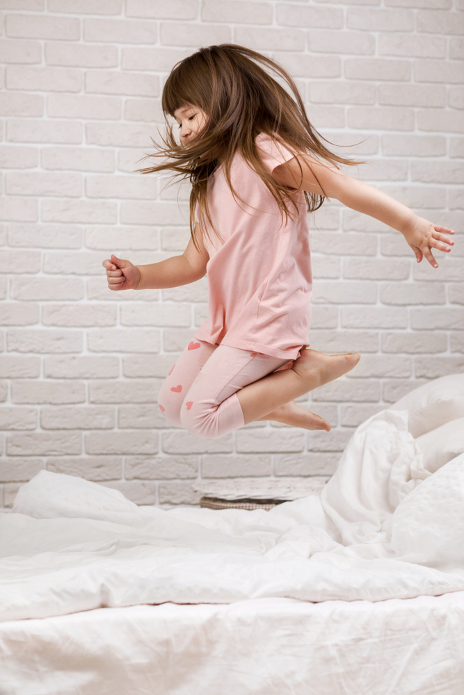 Момиченце скача в кревата. Снимка: Shutterstock години