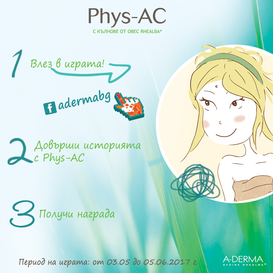 Новият подход, който предлага A-Derma, съчетава третиране и ребаланс на кожата с уникална растителна съставка – кълнове от специален сорт овес Rhealba.Съставките в продуктите от серията Phys-AC повлияват всички фактори, отговорни за изявата на акнеичната кожа – регулиране на омазняването, отпушване на порите, ограничаване на възпалението и бактерията, отговорна за това. Същевременно подходът е съобразен с физиологията на кожата и изключително щадящ във всеки етап– от почистването с гел или мицеларна вода, до кремовете за грижа Phys-AC Global и Phys-AC Hydra"