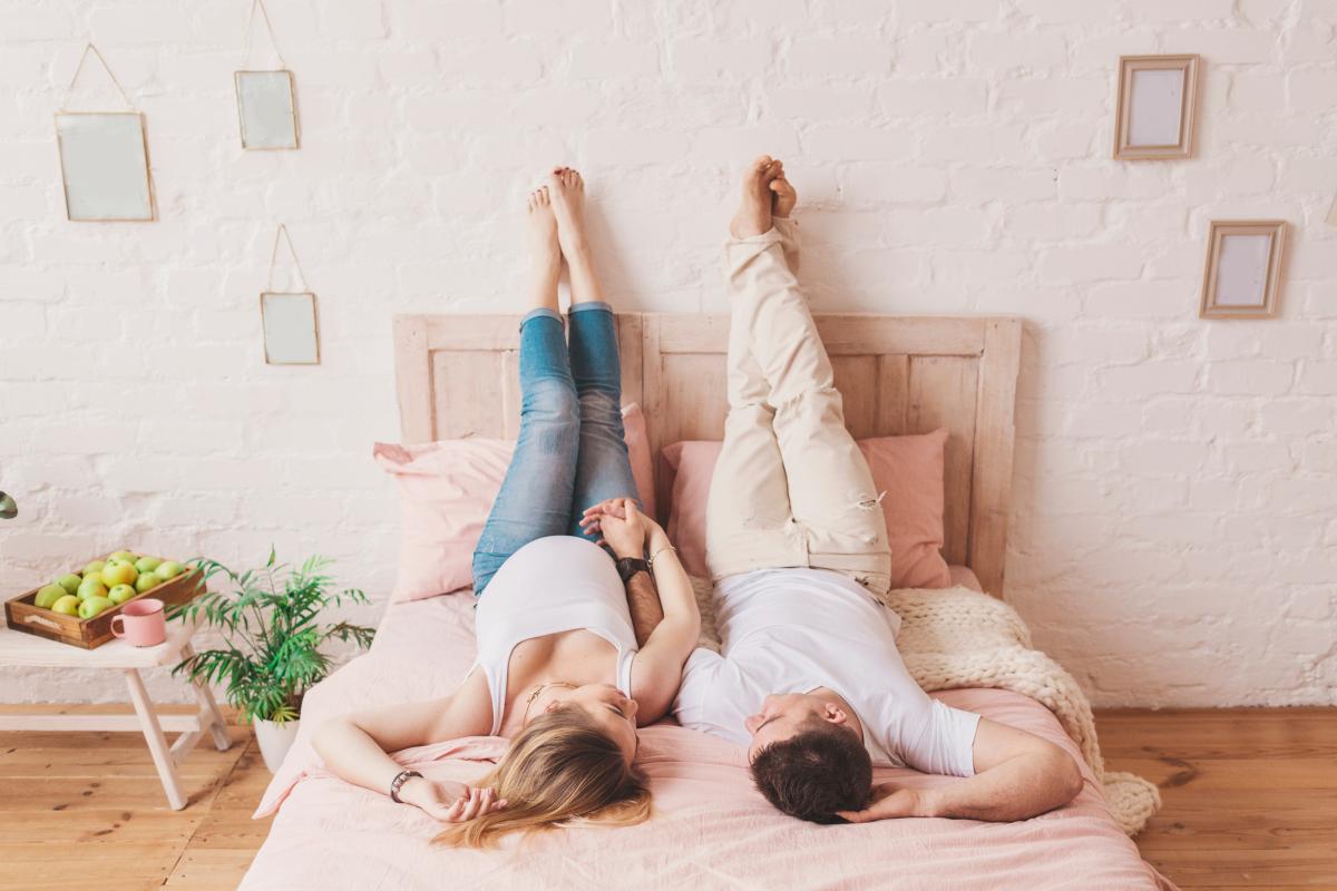 Бременна и нейният партньор си почиват с крака на стената. Снимка: Shutterstock