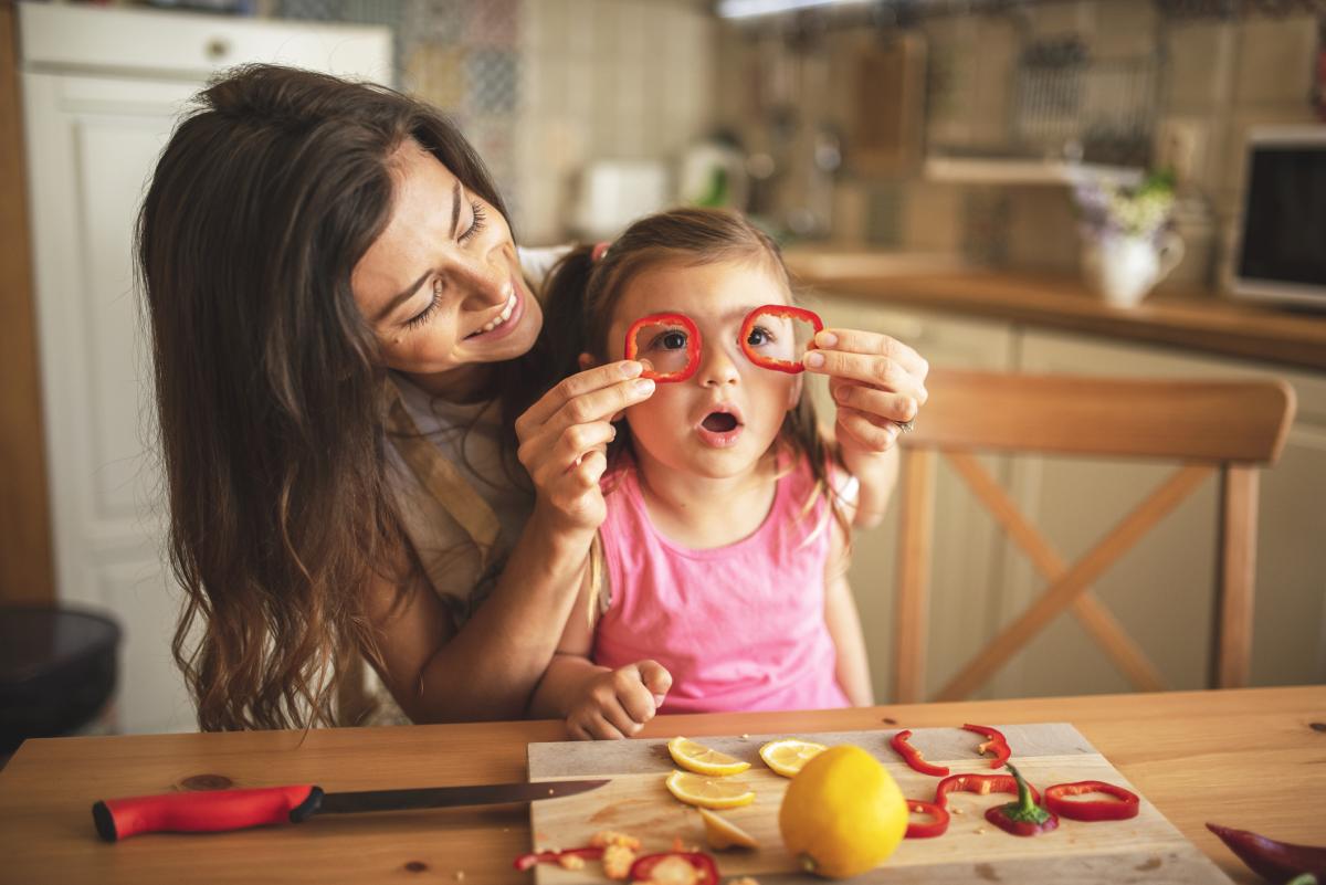 Докато приготвяте ястията, говорете за съставките, позволете на детето да пипне и разгледа продуктите и опитайте плодовете и зеленчуците сурови.