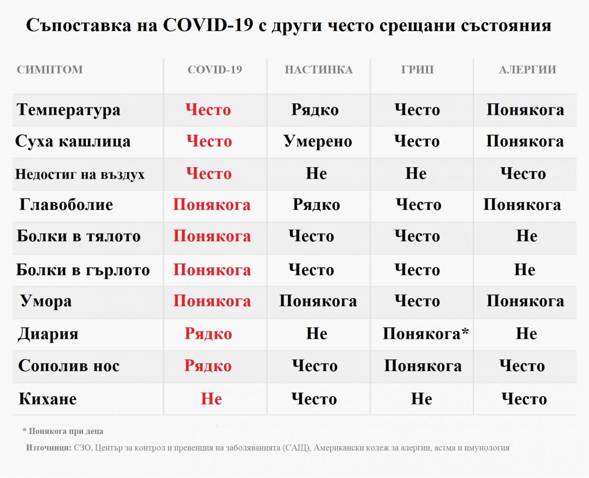 Ето кои са най-често срещаните симптоми, асооцирани с COVID-19: