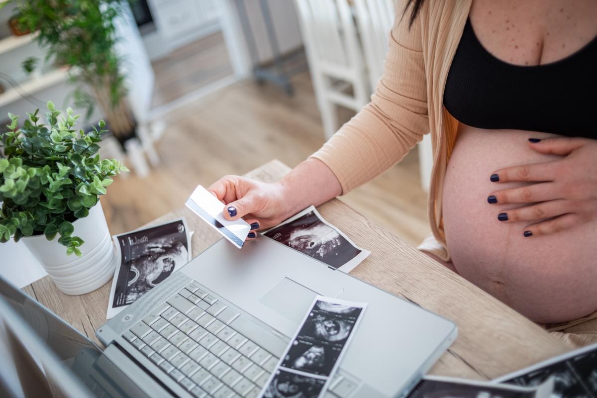 Бременна разглежда снимките от видеозона на бебето си. Снимка: Getty
